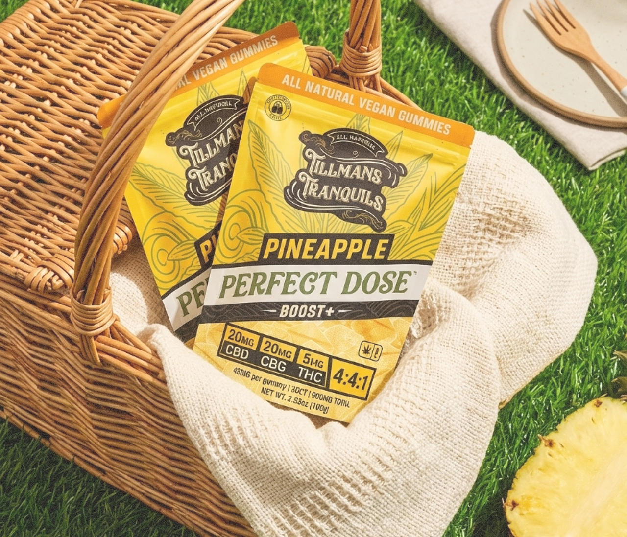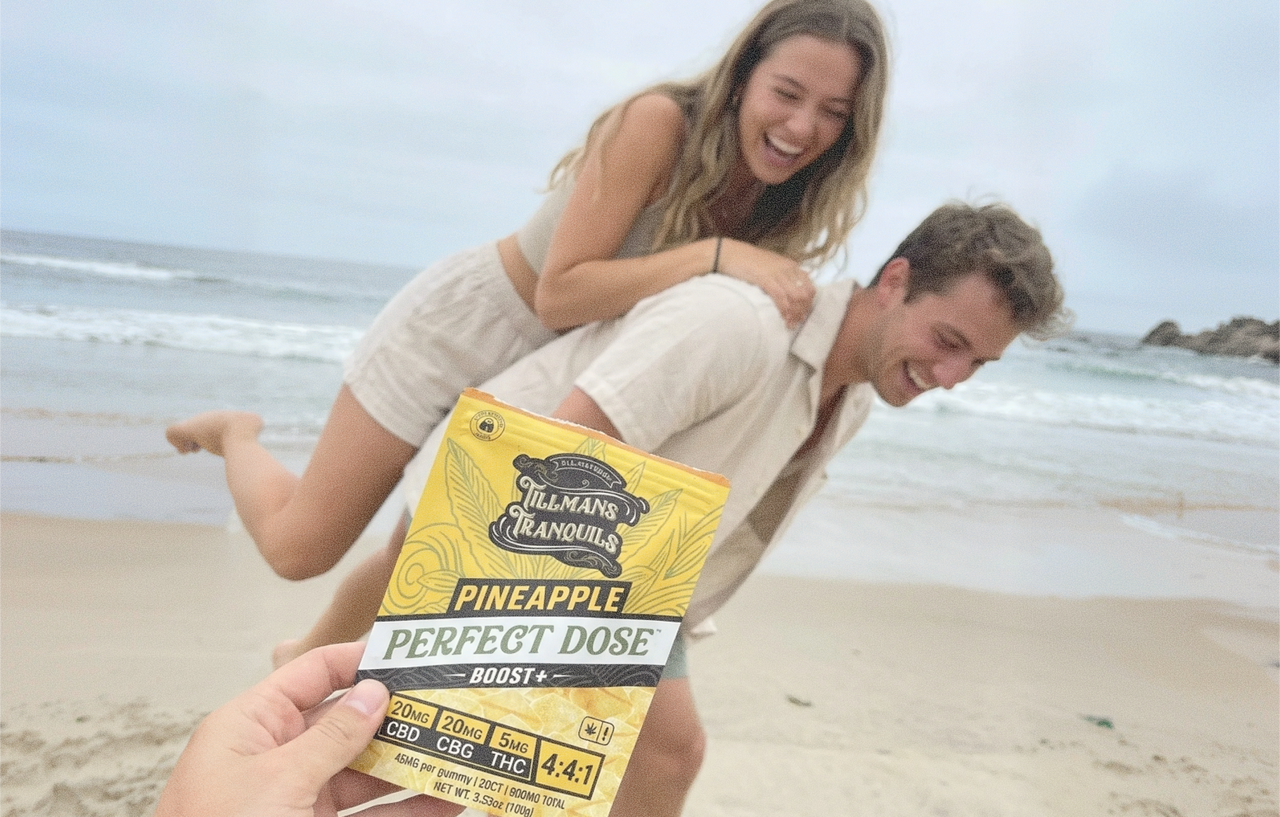 Take one full gummy. That gives you the complete 4:4:1 experience: 20mg CBD + 20mg CBG + 5mg THC.